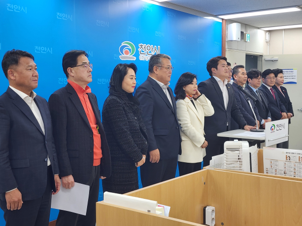 [충청뉴스 박동혁 기자] 충남 천안시의회 국민의힘 소속 의원들이 더불어민주당 천안시의원들을 겨냥해 "나라를 걱정할 자격이 없다"고 비판했다. 시민을 대표하는 시의원으로서 맡은 임무를 다하지 않았다는 이유에서다.
