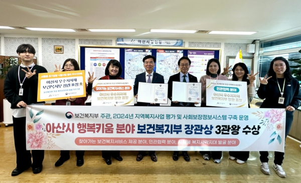 [충청뉴스 박동혁 기자] 충남 아산시는 보건복지부 주관 ‘2024년 지역 복지사업 평가’에서 행복키움 분야 3관왕을 달성했다고 9일 밝혔다.