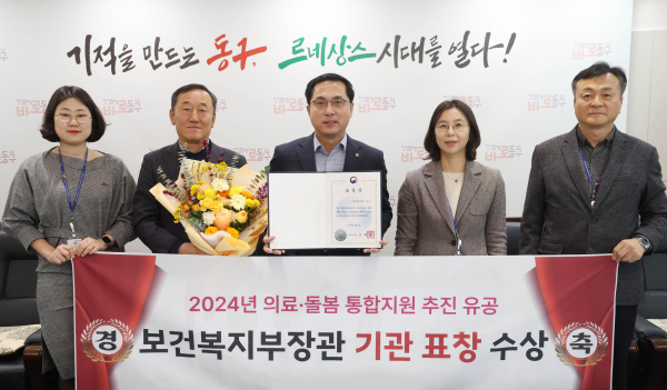 박희조 동구청장은 “이번 수상은 동구의 돌봄 정책이 우수한 평가를 받은 결과로 매우 뜻깊다”며 “모든 주민이 안전하고 행복한 일상생활을 이어갈 수 있도록 돌봄 사각지대를 최소화하고 의료·돌봄 통합 체계 강화에 최선을 다하겠다”고 말했다.
