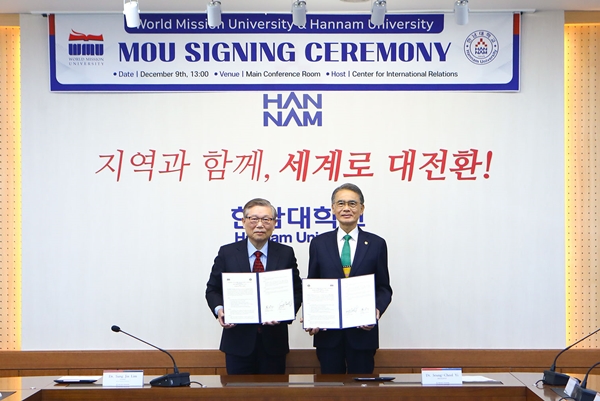 [충청뉴스 이성현 기자] 한남대학교와 미국 월드미션대학교(World Mission University)이 글로벌 리더 양성을 위한 업무협약을 체결했다고 9일 밝혔다.