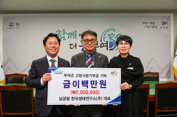 [충청뉴스 부여 = 조홍기 기자] 부여군(군수 박정현)은 지난 9일 한국생태연구소(주)의 남궁형 대표가 고향사랑기부제에 200만 원을 기탁했다고 전했다.