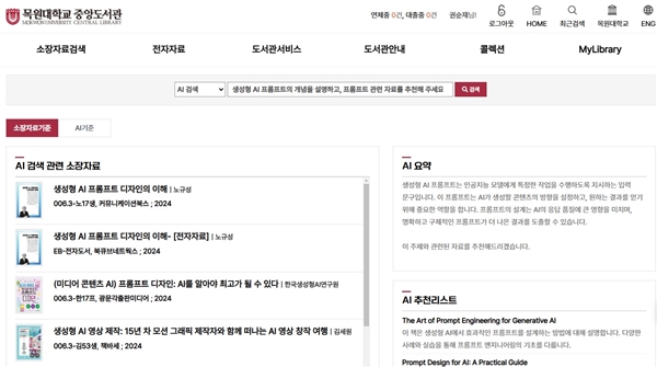 목원대 중앙도서관, 홈페이지에 생성형 AI 탑재