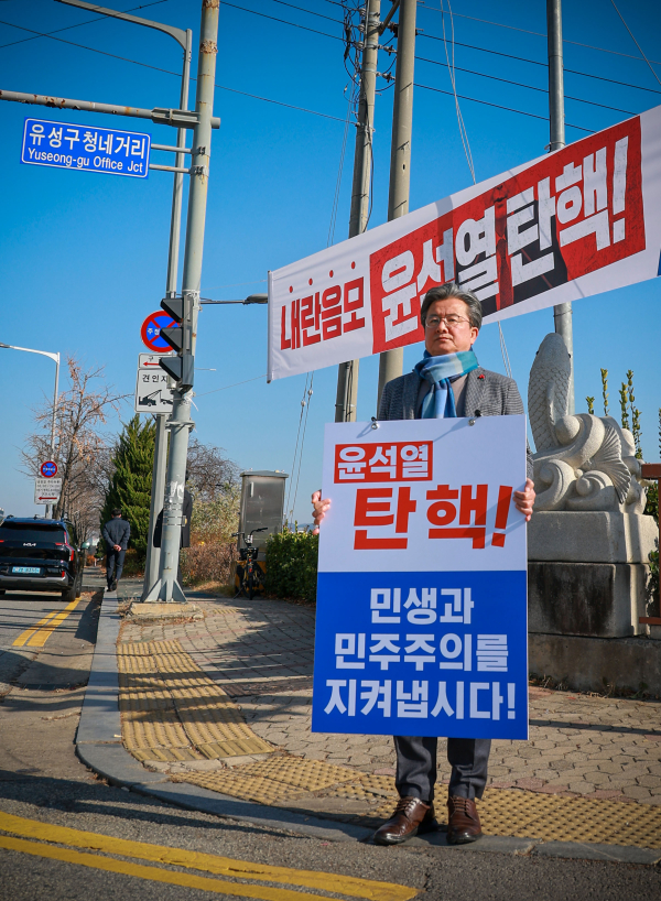 정용래 유성구청장, "윤석열 탄핵 촉구" 1인 시위 나서
