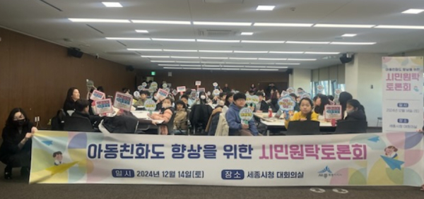 [충청뉴스 최형순 기자] 세종특별자치시(시장 최민호)가 지난 14일 ‘아동친화도 향상’을 주제로 시민원탁토론회를 개최했다.