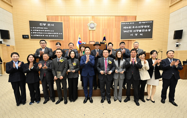 ‘우수의정대상’은 대한민국시도의회의장협의회가 각 시도의회의장의 추천을 받아 지역 의정 발전에 기여한 의원에게 수여하는 상으로, 올해로 16번째를 맞이했다.