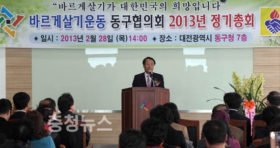바르게살기운동 동구협의회(회장 장길영)는 28일 동구청 중회의실에서 한현택 동구청장 등 100여명이 참석한 가운데 2013년 정기총회를 개최하고 모범회원 표창 수여 및 올해 사업계획 등을 수립했다.