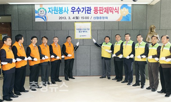 대전시는 4일 오후 3시 서구 둔산동 신용협동조합중앙회에서‘자원봉사 우수기업’동판 제막식을 가졌다.