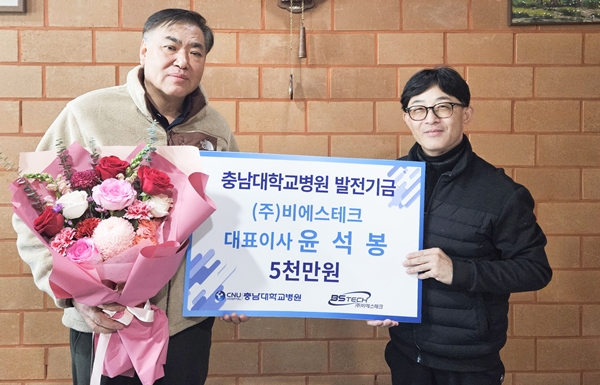[충청뉴스 이성현 기자] ㈜비에스테크 윤석봉 대표이사가 충남대병원에 발전기금 5000만원을 전했다.