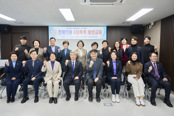 조규식 의장은 “이번 교육으로 의원과 공직자들이 4대 폭력 예방의 중요성에 대한 인식을 높이는 계기가 되었다”라며, “앞으로도 서구의회는 지속적인 교육과 연수를 통해 의원들의 역량을 강화하여, 건전하고 신뢰받는 조직문화를 조성하기 위해 최선을 다하겠다”라고 전했다.