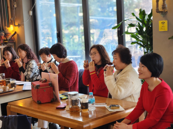 [충청뉴스 최형순 기자] 온 오카리나(회장 이기숙)는 23일 공주 소소한 브런치 카페에서 회원 11여 명이 참여한 가운데 송년 음악회를 개최했다.