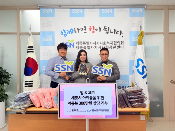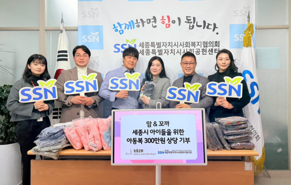 [충청뉴스 최형순 기자] 세종특별자치시사회복지협의회(회장 김부유)는 26일 아동복 전문 매장인 맘엔꼬까(사장 유소정)와 함께 300만 원 상당의 아동복 기부식을 진행했다.