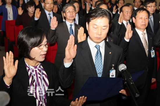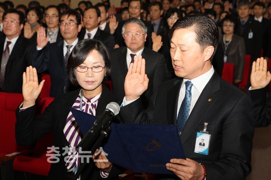 충남교육청은 8일 오후 2시에 교육전문직 260명이 참석해 2013학년도의 시작과 내포시대 개막을 맞아 교육전문직의 주요업무 추진 방향을 제시하고, 새출발 각오와 학교 교육력 향상을 위한 지원행정 실천을 다짐하는 ‘청렴행정 실천 교육전문직 결의대회’를 가졌다.
