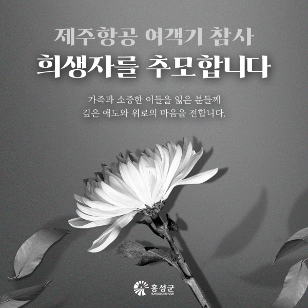 이용록 홍성군수는 “이번 참사와 관련 희생자의 명복을 빌며, 유가족 여러분께 깊은 애도와 위로의 말씀을 드린다”며 “홍성군민의 안전과 생명을 책임지는 지방정부의 수장으로서 큰 슬픔을 겪고 계실 유가족들의 아픔을 군민과 함께 나누고자 행사를 모두 취소했다”고 말했다.