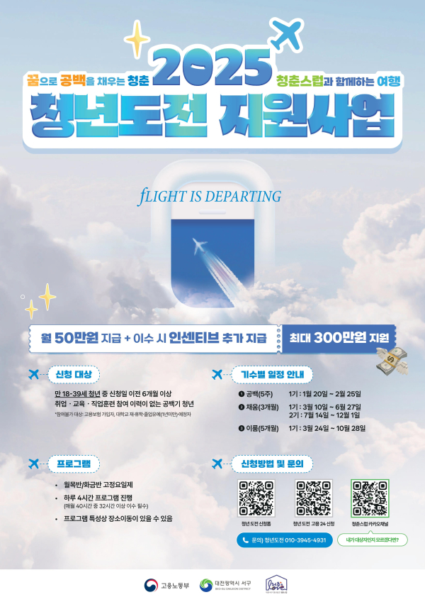 [충청뉴스 박영환 기자] 대전 서구(구청장 서철모)는 공백기 청년을 대상으로 원활한 사회활동 및 사회진입 지원을 위해 2025년 청년도전지원사업 참여자를 모집한다고 밝혔다.