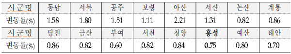 2025년 충청남도 표준지공시지가 변동률 현황 (단위: %)