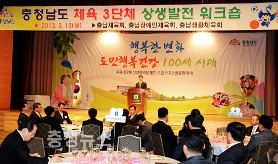 주제발표에서는 김종인 공주대 교수가 ‘체육 3단체 선수의 상생발전 방안’을, 성문정 체육과학연구원 정책개발연구실장이 ‘충남 장애인체육 발전방향-상생발전을 위한 제언’을, 손석정 남서울대 교수는 ‘지역사회 체육의 상생발전’을 각각 제시했다.