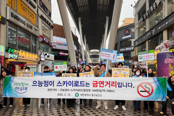 [충청뉴스 박영환 기자] 대전 중구는 지역의 대표 명소인 으능정이 스카이로드 구간을 쾌적하고 담배 연기 없는 거리 환경으로 조성하기 위해 이번 달 13일부터 금연거리로 지정하고 홍보 캠페인을 펼쳤다고 밝혔다.