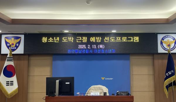 송해영 동남경찰서장은 “청소년 도박 문제는 청소년 자체만의 문제가 아닌, 사회가 함께 해결해야 할 숙제”라며 “앞으로도 도박 청소년에 대한 선도프로그램과 상담 연계를 지속하고, 다양한 방법으로 도박 예방·치유를 위해 힘쓰겠다”고 밝혔다.