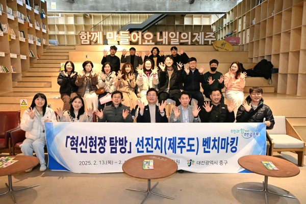 [충청뉴스 박영환 기자] 대전 중구는 전국의 우수 혁신사례 현장을 방문하는 ‘혁신현장 사례탐구 교육사업’의 첫 번째 탐방지로 제주도를 선정해 탄소중립 친환경 정책, 청년 일자리, 마을공동체 등 다양한 우수사례를 벤치마킹했다고 전했다.