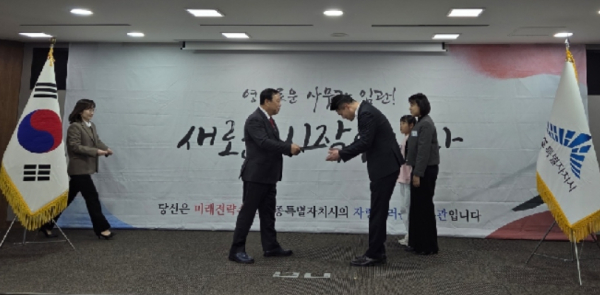 [충청뉴스 최형순 기자] 세종시는 17일 시청 대회의실에서 가족과 간부 공무원 등 70여 명이 참석한 가운데 사무관 임용식을 개최했다.