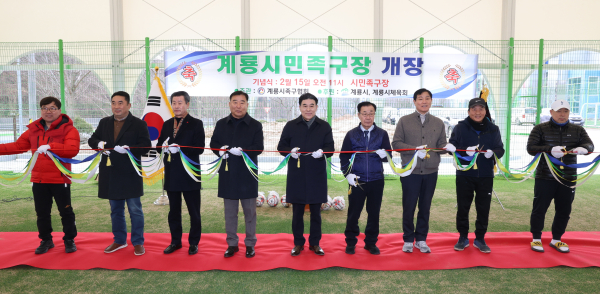 [충청뉴스 계룡 = 조홍기 기자] 계룡시(시장 이응우)는 지난 15일 엄사면 종합운동장에서에서 비가림시설이 설치된 전천후 족구장 개장식을 가졌다.