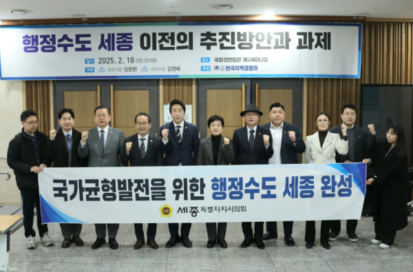 [충청뉴스 최형순 기자] 세종특별자치시의회(의장 임채성)는 18일 국회의원회관 제2세미나실에서 개최된 '행정수도 세종 이전의 추진방안과 과제' 토론회 개최를 환영하며, "수도권 과밀 해소와 국가 균형 발전을 위한 대통령실, 국회 이전 논의가 본격화하기를 기대한다"고 밝혔다.