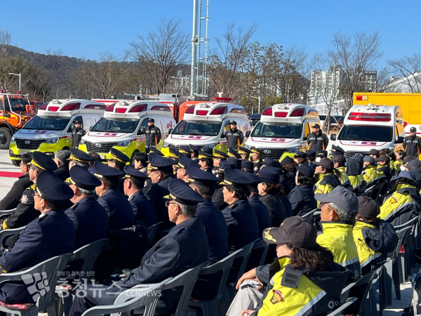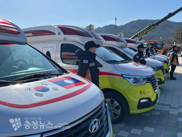 충남소방본부, 20일 법적 사용 기간 경과 구급차 10대 출하식