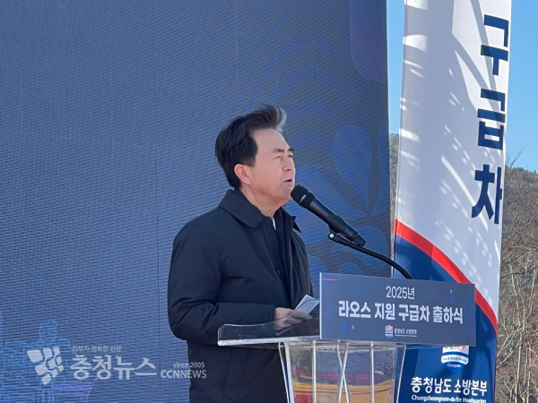 충남소방본부는 20일 도청 다목적광장에서 김태흠 지사와 고광철 도의회 건설소방위원장, 유현숙 나눔문화예술협회 이사장 등 400여 명이 참석한 가운데 라오스 지원 구급차 출하식을 개최했다.