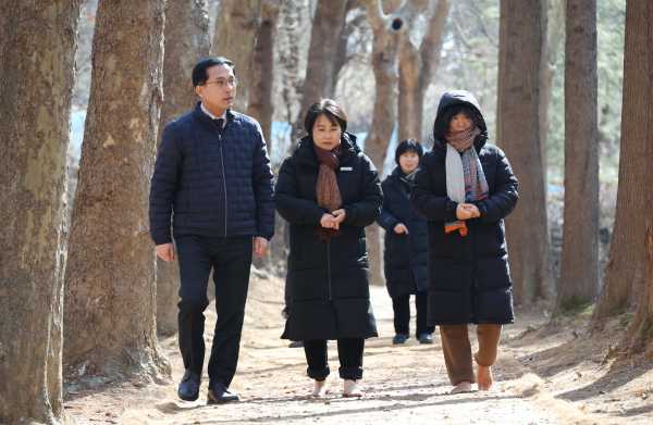 먼저, 박희조 동구청장과 지역 주민들은 지난해 12월 준공을 완료한 가오근린공원 내 맨발산책로 현장을 방문해 조성사업 보고를 청취한 후, 함께 산책로를 답사하며 운영 관련 다양한 의견을 나눴다.