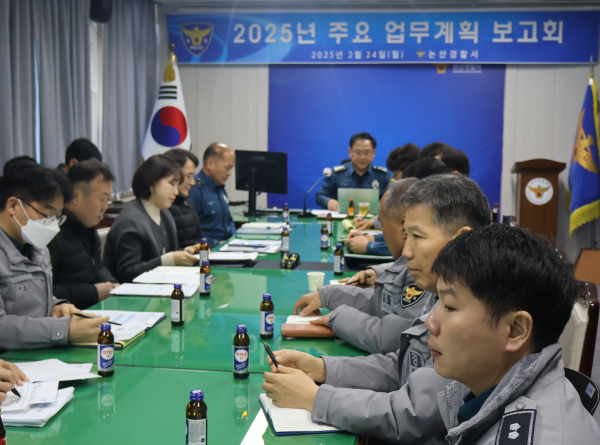 [충청뉴스 논산 = 조홍기 기자] 논산경찰서(유동하 서장)는 24일 2층 소회의실에서 서장, 각 과장, 지역관서장, 계·팀장 등 관리자 30여명이 참석한 가운데 2025년 논산경찰서 주요업무계획 보고회를 개최했다.