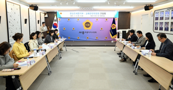 [충청뉴스 최형순 기자] 세종특별자치시의회 교육안전위원회(위원장 윤지성)는 24일 전국교직원노동조합(전교조) 세종지부와 간담회를 갖고 주요 교육 현안에 대한 의견을 교환했다.