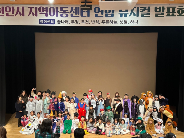 [충청뉴스 최형순 기자] 천안시 지역 아동센터 아이들이 갈고닦은 실력을 뽐내는 '천안시 지역 아동센터 연합 뮤지컬 발표회'가 성황리에 막을 내렸다.