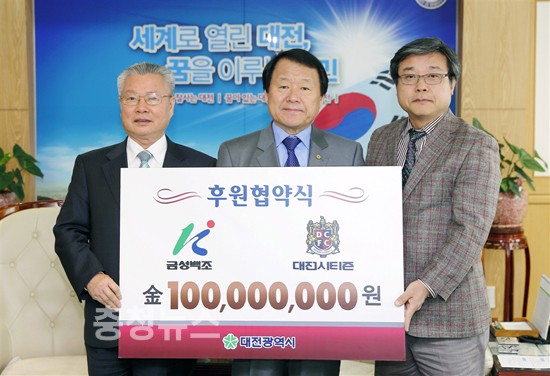 대전시티즌 구단주인 염 시장은 “금성백조의 지원이 시민구단인 대전시티즌에 큰 힘이 될 것이며, 후원에 진심으로 감사드린다”고 밝혔다.