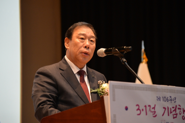 이어 "1919년 3월 1일 정오 일제의 탄압에도 우리 선열들은 우리 민족의 자주독립을  외치며  온국민 이 한 마음 한뜻으로 태극기를 흔들며 대한독립만세를 외쳤다"며, "총칼보다 강한 것이 국민의 의지였고, 두려움보다 강한 것이 자유 독립을 향한 열망이었다"고 강조했다.