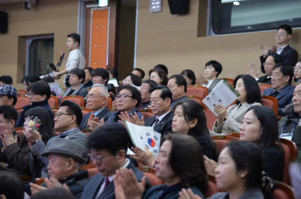 기념식에 참석한 이은영 장남조합장을 비롯한 시민들