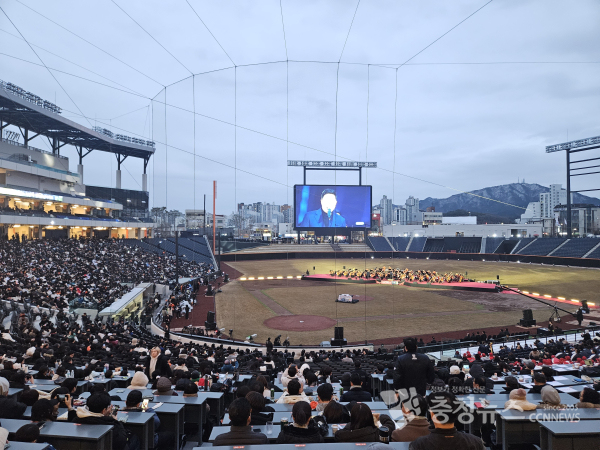 한편 이날 행사엔 이장우 대전시장과 조원휘 대전시의회의장, 허구연 KBO 총재, 이승찬 대전시체육회장, 대전 시·구의원들과 약 1만 4천 명의 시민과 팬들이 참석해 개장을 축하했다.