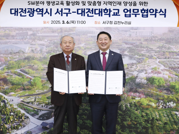 서철모 서구청장은 “소프트웨어 경쟁력이 중요한 시대인 만큼 지역사회와 대학의 협력을 통한 SW관련 평생교육 기회 확대는 지역 내 맞춤형 인재를 양성하는 중요한 발판이 될 것”이라며 “이번 협약이 지역 평생교육 혁신과 대학 발전을 이끌어 양측이 동반 성장하기를 바란다”고 말했다.