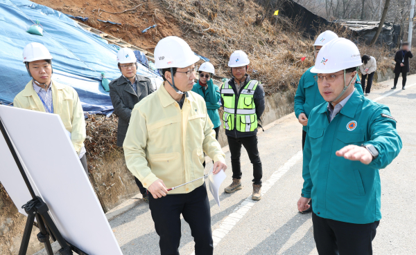 먼저, 지난 2월 낙석방지망과 울타리 등 급경사지 안전시설 설치가 완료된 세천체육공원을 방문해 준공 현장을 점검헀으며, 이어 내년 5월 준공 예정인 대청호수길 선형개량사업 공사 현장과 지난해 12월 준공된 효평동 산39-7번지 급경사지 보강공사 현장을 찾아 전반적인 안전 점검을 실시했다.