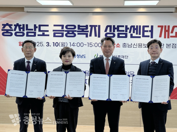 충남신용보증재단(이하 충남신보)은 10일 충남신보 본점 강당에서 충남경제진흥원과 충남사회서비스원, 신용회복위원회 대전·충청 지역본부와 ‘충청남도 금융복지 상담센터(이하 상담센터) 개소 및 MOU 체결식’을 개최했다.