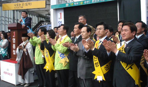 염후보는 이날 중앙당 지원없이 연설회를 열고 "한나라당의 싹쓸이로부터 대전을 지키는 것이 대한민국의 풀뿌리 민주주의를 지키는 것"이라며