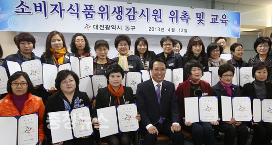 대전 동구(구청장 한현택)는 12일 구청 소회의실에서 부정·불량식품 감시활동 강화를 위해 58명의 소비자식품위생감시원을 위촉했다.