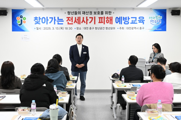 [충청뉴스 박영환 기자] 대전 중구는 지난 13일 중구 청년들의 문화공간인 ‘청년모아’에서 사회에 첫발을 내딛는 청년들을 대상으로 찾아가는 전세사기 피해예방 교육을 실시했다고 밝혔다.