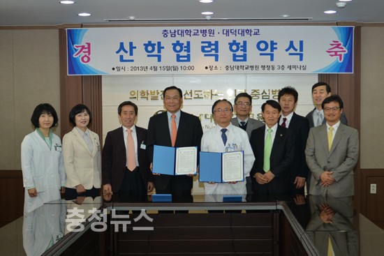 충남대학교병원(원장 송시헌)와 대덕대학교(총장 홍성표)는 15일 오전 행정동 3층 세미나실에서 산학협력을 통하여 공동의 발전을 도모하고자 산학협력 협약식을 개최했다.