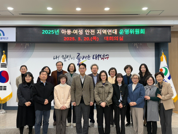 [충청뉴스 박영환 기자] 대전 대덕구가 아동과 여성의 안전을 강화하고, 안전한 지역사회 환경을 조성하기 위해 20일 ‘아동·여성 안전 지역연대 운영위원회’를 개최했다고 밝혔다.