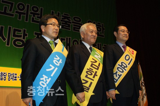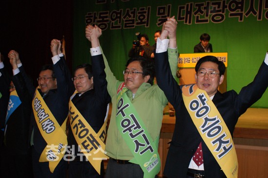 김한길 후보는 충남도청이전법안의 조속한 통과, 과학벨트에 대한 국비지원, 충청권 광역도로망의 조기 착공, 대전지방의료원 설립 뭐 하나 제대로 되는 일이 없다. 민주당이 두 눈 부릎뜨고 제대로 챙기겠다고 약속했다.