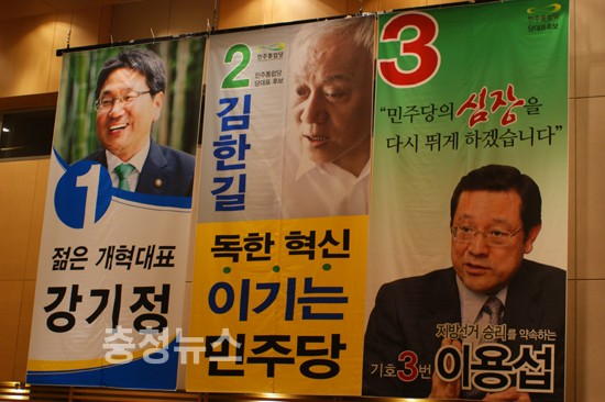 대전시당 정기대의원 대회 의장 선출 (차기 대의원대회까지 임기) 18일 대전 컨벤션 센터 문희상 비대위원장, 이낙연 선거관리위원장, 대표 후보으로 나선 강기정, 김한길, 이용섭 최고위원 후보로 나선 양승조, 유성엽, 윤호중, 안민석, 조경태, 우원식후보가 지지를 호소했다.