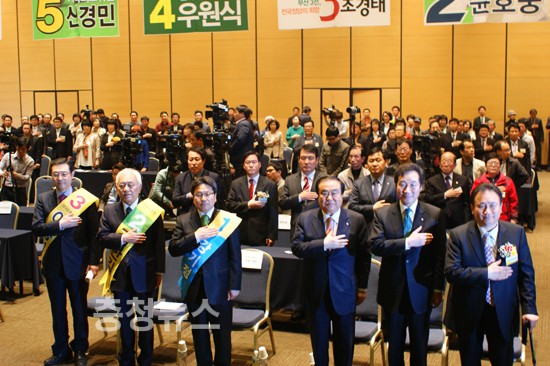 문희상 비대위원장, 이낙연 선거대책위원장, 김영록 사무총장, 권선택 전 의원, 선병렬 전 의원,김경훈,박정현,권중순 시의원 ,강래구 동구지역위원장, 이서령 중구지역위원장, 허태정 유성구청장, 김인식 의원과 김명경시의원의 사회로 진행됐으며 박범계의원은 법사위 회의관계,박병석 부의장은 대통령 특사로 베네수엘라 대통령 취임식 관계로 불참했다.