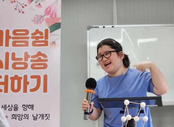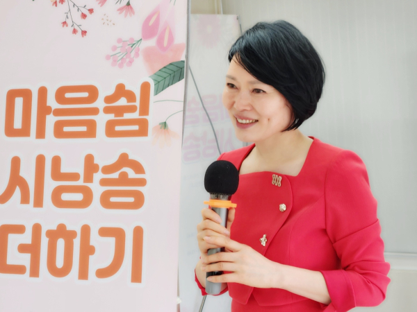 [충청뉴스 최형순 기자] 변규리시낭송아카데미 원장(대전시낭송예술인협회 회장)은 24일 대전 유성구 장애인종합복지관에서 장애인들을 위한 특별한 시낭송 교육 프로그램인 '마음쉼 시낭송 더하기' 첫 수업을 실시했다.