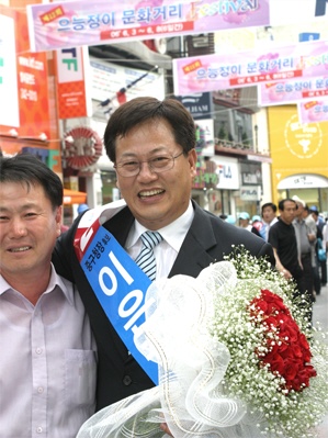 이은권 후보 꽃다발 받고 함박웃음 5.31 지방선거를 이틀 앞둔 29일 오후 3시경 중구 은행동 으능정이 거리에 박근혜 대표를 비롯한 한나라당 대전지역 출마 후보자들이 총 출동한 가운데 이은권 중구청장 후보가 한 유권자로부터 꽃다발을 받고 승리를 다짐하며 활짝 웃고 있다. 저작권자 © 충청뉴스 무단전재 및 재배포 금지 홍세희 기자 다른기사 보기 기사가 마음에 드셨나요? 충청뉴스 좋은 기사 후원하기 1,000원 3,000원 5,000원 10,000원 30,000원 50,000원 직접입력 비회원 약관동의하기 ※ 소중한 후원금은 더 좋은 기사를 만드는데 쓰겠습니다.