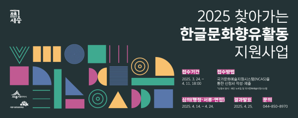 [충청뉴스 최형순 기자] 세종시문화관광재단(대표이사 박영국)은 문화향유 불균형 완화를 위한 '2025 찾아가는 한글문화 향유활동 지원사업'에 참여할 단체를 4월 11일까지 공모한다.
